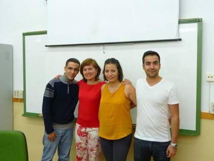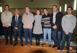 Salón de actos del IES “Lucía de Medrano Los tres alumnos del Lucía de Medrano que realizaron prácticas de auxiliar administrativo en Finlandia, junto con los alumnos finlandeses que están en “SOS Informática” realizando sus prácticas en Salamanca, nos contarán sus experiencias, acompañados por sus profesores y por Martín Gil, dueño de la empresa donde realizan las prácticas los alumnos finlandeses, Miikka y Marcus.